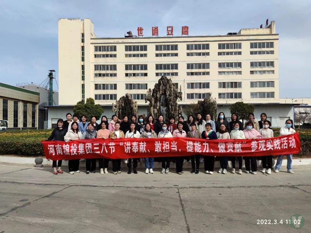 瀏覽次數(shù):8817次3月4日,為迎接即將到來的“三八”國際勞動婦女節(jié),充分調(diào)動女職工工作積極性,激發(fā)干事創(chuàng)業(yè)熱情,結(jié)合“能力作風建設(shè)年”活動有關(guān)要求,河南糧投集團以“講奉獻、敢擔當,提能力、做貢獻”為主題開展赴河南世通食品有限公司參觀學習實踐活動,集團總會計師任才,集團本部及子公司女職工代表40余人參加了活動。